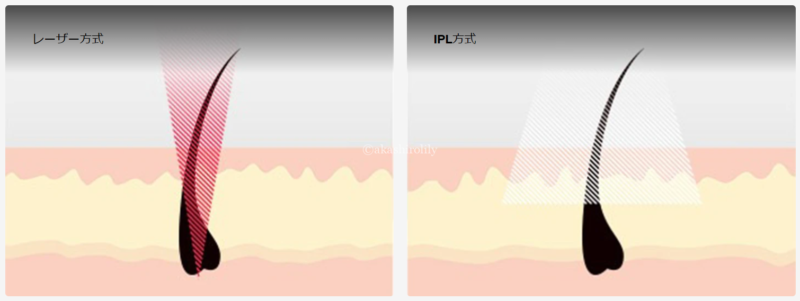 ブラウンなどのIPL方式は波長幅が広い光を採用しているのに対して、レーザー方式は毛を標的とする特定の波長のみの光を使用しています。